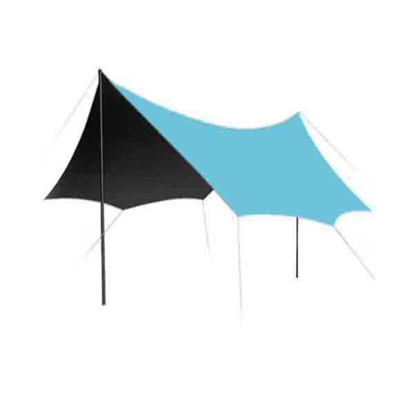 احتمالا برای شما پیش آمده برای تفریح به طبیعت رفته باشید، سایه مناسب درختی برای گذراندن روز پیدا نکرده و زیر آفتاب، روز ناخوشایندی را سپری کرده اید. سایه بان BD7020 محصولی از برند بلک دیر می باشد. این سایبان سفری با حجم و وزن کم، گزینه مناسب برای کمپینگ و سفر است تا شما را در مقابل اشعه خورشید و بارش باران های ناگهانی محافظت نماید. این محصول سایه بان بزرگی است که در برنامه های هایکینگ، کمپینگ، کنار دریا، پیک نیک های خانوادگی و خیلی موارد دیگر کاربرد دارد. سایه بان ها اصولا برای حفظ افراد و وسایل در برابر نور خورشید و باران طراحی و تولید می شوند. این سایه بان به راحتی برپا می شود و فضای بزرگی را تحت پوشش قرار می دهد. می توان آن را برای محافظت بیشتر بر روی چادر برپا کرد و فضای اطراف چادر را برای پخت و پز و استراحت و دیگر فعالیت ها مهیا نمود. این سایبان به راحتی قابل حمل توسط طبیعت گردان و گردشگرانی است که با اتومبیل، موتور می کنند تا در مسیر خود یا در دل طبیعت از این پوشش برای استراحت و در امان ماندن از نور خورشید، باران و حتی برف استفاده نمایند. در این سایه بان پارچه آکسفورد (PU) 210D ضد آفتاب با روکش لاستیکی مشکی به کار رفته است. مواد میله پشتیبان نیز: از پروفیل فولاد کربنی لوله ای 2.4 متری با قطر 22 میلی متر می باشد.