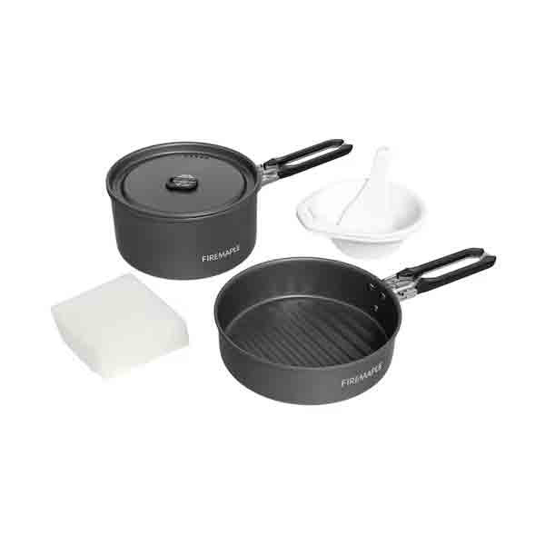 ست لوازم پخت و پز کوهنوردی فایرمپل مدل FEAST 1 شامل ماهی تابه، قابلمه ، یک درب (مناسب قابلمه و ماهیتابه) ، کفگیر ، دو عدد کاسه کوچک و اسکاچ میباشد. این ست ظروف به راحتی قابل حمل می باشند و پک کامل آن داخل کیف توری قرار میگیرد. این ست در داخل هم جا گذاری می شوند تا فضای بسیار کمی را اشغال نمایند و به راحتی در کوله پشتی شما جای گیرند. جنس آلومینیوم سخت با روکش نچسب در این مدل به شما امکان میدهد تا علاوه بر اینکه بابت سنگینی ظروف غذای خود مشکلی نداشته باشید، ظرفهایتان از دوام بسیار بیشتری برخوردار باشند و در کنار آن، بابت چسبیدن غذا به ته قابلمه یا ماهیتابه ی خود هم نگران نباشید. همچنین دستهی قابلمه و ماهیتابهی ظرف غذای فایرمپل مدل Feast 1 فلزی با قسمت مخصوص نگهداری دست، از جنس پلاستیک نسوز است و تاشو و قفل دار می باشند.