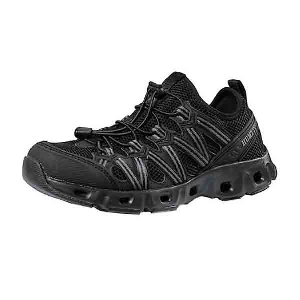 کفش پیاده روی HUMTTO مدل 610049A مناسب برای پیاده روی و کوهپیمایی در فصل بهار و تابستان می باشد. شما با این کفش میتوانید پیاده روی راحتی را در مسیر دره و داخل رودخانه داشته باشید. کفی این کفش لژدار بوده که نرم و اسفنجی می باشد . همچنین قسمت کف کفش دارای عاج می باشد که مانع از لغزش و سر خوردن شما می شود. لایه رویی کفش دارای منفذ است که باعث گردش هوا و جلوگیری ازعرق کردن پا میشود و همچنین در مسیرهای رودخانه آب به سرعت از کفش شما خارج می شود. کفی این کفش به گونه ای مشبک طراحی شده تا در صورت ورود آب، تخلیه آن سریع انجام شود. دورتادور کفش نیز سوراخ هایی جهت تخلیه سریع آب درون کفش قرار دارد.