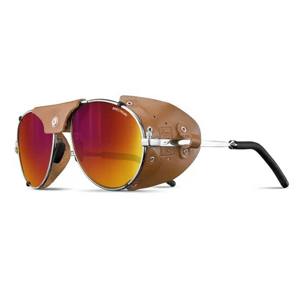 عینک کوهنوردی Julbo مدل CHAM مجهز به فریم استیل بوده و در قسمت بادگیر های آن از چرم طبیعی استفاده شده است و میتواند در مقابل باد و نور از چشم کاربر کاملا محافظت نماید ، این بادگیر قابلیت جداسازی داشته و قسمت دسته عینک نیز به گونه ای طراحی شده که از قابلیت انعطلاف پذیری بالا ( قابلیت شکل دادن ) برخوردار است.
