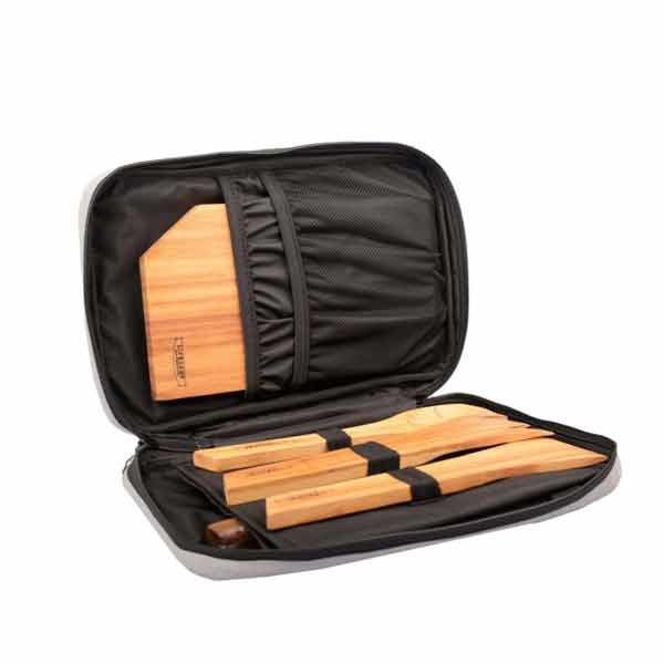 این مجموعه فوق العاده و جذاب برای آشپز های حرفه ای نیز هست که شامل کارد، قاشق چوبی بزرگ، چنگال چوبی بزرگ، برگردون چوبی، تخته برش چوبی از جنس بامبو و کیف حمل زیپی می باشد.