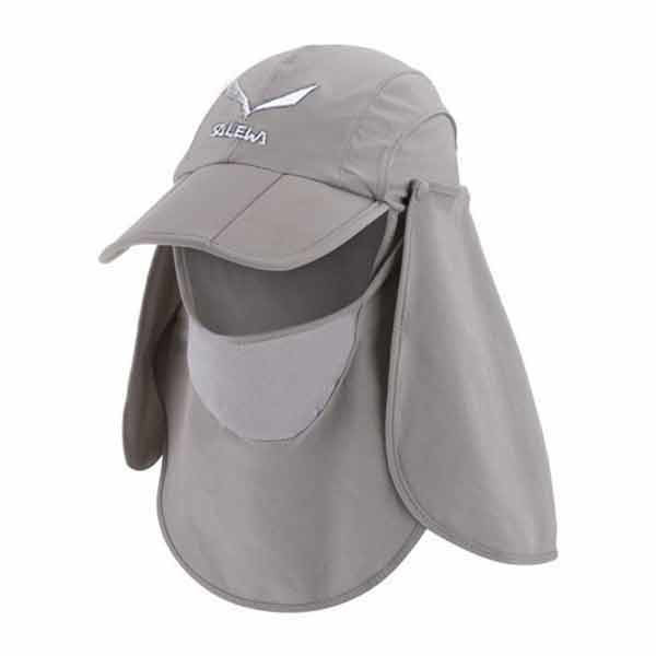 کلاه آفتابگیر سه تکه سالیوا SALEWA یکی از پر فروش ترین کلاه های کوهنوردی تابستانی بوده که به صورت 3 تکه یا سه قسمته طراحی شده است ، این کلاه شامل یک کلاه نقاب دار، یک کاور برای قسمت پشت سر و گردن و یک کاور برای جلوی صورت و زیر چانه و گردن می باشد. هر کدام از این بخش ها قابلیت جداسازی و اتصال توسط دکمه فشاری را دارند.