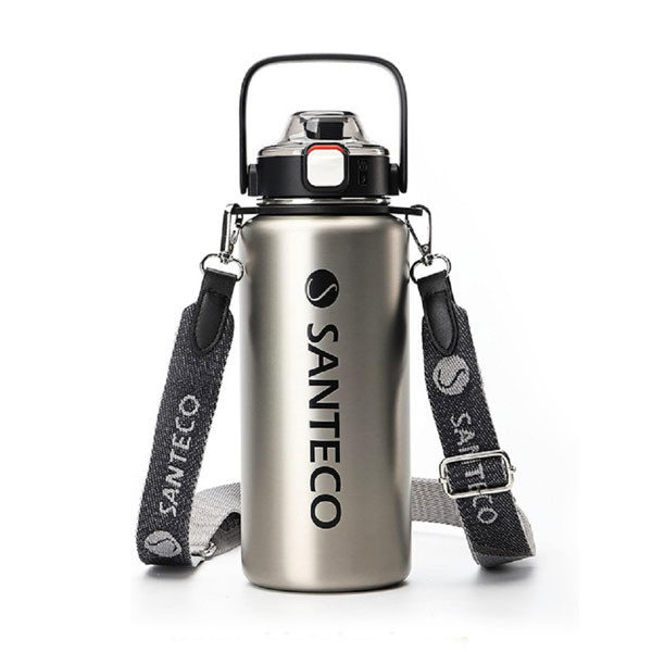 بطری آب دوجداره و نی دار SANTECO مدل ERIE حجم 1200 میلی لیتر رنگ نقره ای