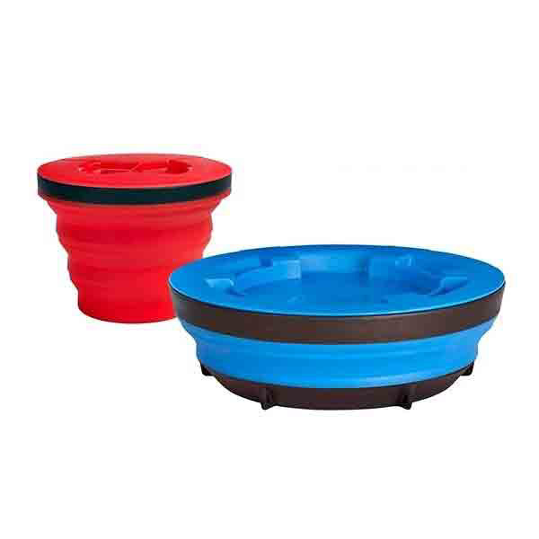 ست کاسه و ماگ تاشو و درب دار SEATOSUMMIT مدل SEAL & GO رنگ آبی قرمز